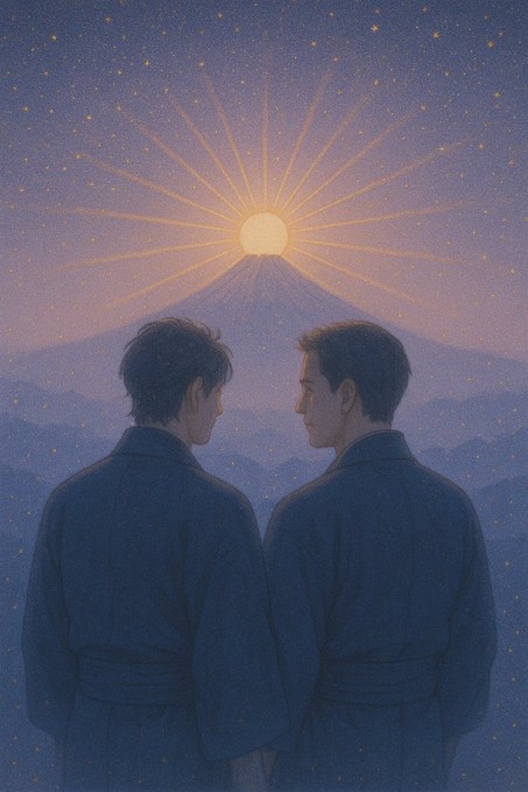 最愛の人が腰を動かし、その動きが彼の最も敏感な核に触れたのだろう。乱れた紺色の着物から露出した紅色の肢体が、白魚のように艶やかに躍った。その綺麗な弧を描く仕草に合わせて、紺色の布がさらに肌から滑り落ちるのも、最高の色香に満ちていた。とはいえ、今宵の趣向は昆布巻きだ。だから帯は彼の少し細いウエストに巻き付いている。